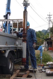 温泉井戸ポンプの引き揚げ作業