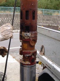 スケールの生じやすい温泉井戸は、定期的な井戸ポンプの洗浄をお勧めします。長期間放置すると井戸中でポンプがスケールで固着して引き揚げも出来なくなる場合があります。
