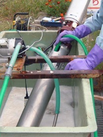 現場でのポンプの洗浄作業